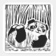 An original linoprint of a cute little black and white panda bear at play. Perfect for children and kids who like cuddly animals.