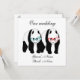 Une faire-part de mariage. Deux mignonnes panda noirs et blancs portant des lunettes. Le panda mâle a des lunettes turquoise avec un arc et la femelle a rouge avec un arc rose. Cette invitation peut être entièrement customisée pour répondre à vos besoins.