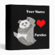 This adorable homework binder can be customized with your childs name. The binder is imprinted with a detailed cute drawing of a panda bear hugging a tree. There is also a big red heart on the binder with the word Panda imprinted under it. Let your child share their love for pandas with their classmates.