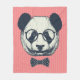 This design features a hand drawn panda with sunglasses and bow tie.