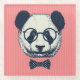 This design features a hand drawn panda with sunglasses and bow tie.