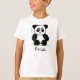 A shirt with a panda depicted in the grass with a bamboo stick.