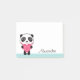 Post-it® notes featuring a cute cartoon panda holding a pink love heart. Customizable name. Fun, customizable design for girls.