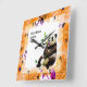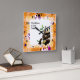 Panda with Orange Flower Frame Square Wall Clock