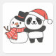 Panda with snowman in winter for Christmas - a snowman for winter and Christmas. A winter greeting in the cold season for the holidays. Christmas panda with snowman.