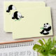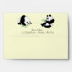 Illustrations Cute panda sur une enveloppe. Deux pandas de dessins humoristiques en noir et blanc s'assoient avec des pousses de bambou vert dans leurs pattes devant, derrière et à l'intérieur de cette enveloppe. Il y a un espace réservé pour votre nom et votre adresse de retour sur le rabat arrière. Vous pouvez également changer la couleur du arrière - plan et choisir une enveloppe avec une taille et une finition différentes.