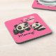 A mommy and baby panda bear design with a pink background and text and white hearts and text that reads I Love Mommy on T-shirts, bodysuits, mugs, cards, stickers, bags, magnets, and more.