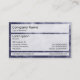 A business card template with a three panelled design on the front, with a header, body and footer layout for all the main details. On the reverse of the card there is a single main panel which can be used to add additional details and or images or left blank providing a useful note panel. This version has an image texture in the background with semi transparent white panels allowing the texture to show through without detracting from the clarity of the text. This template can also be further customized, e.g. a logo could be added to the left in the header panel, the fonts and background colour can also be changed. Suitable for many types of business. A growing range of other variations of this template are also available.