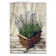 panier de lavande sur la carte de voeux en bois rustique de planches