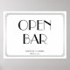 Art Déco noir et blanc Grand Gatsby mariage Open Bar imprimé avec cadre argenté et texte personnalisable - vous pouvez ajouter le nom de la mariée et du marié et la date du mariage. Les dimensions de l'affiche sont de 24 pouces sur 18 pouces.