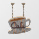 Un panneau en bois de style vintage en forme de tasse de café dit Cafe.