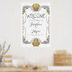Panneau de bienvenue blanc et or pour mariage, fête prénatale, fête de bébé, anniversaire, entreprise, Art Déco 1920, les Roaring Twenties