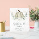 Accueillez vos invités à votre jour spécial avec ce panneau de fête de mariage automnal, avec une verdure de citrouille blanche et une écriture calligraphique élégante verte. Le panneau de bienvenue parfait pour une fête de mariage avec des citrouilles blanches pour la décoration de mariage automnal.