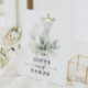 Ce design élégant présente un bouquet aquarellé doux d'eucalyptus, de feuillage et d'ornements dorés entourant une robe peinte. Placez ce panneau sur votre table de cadeaux. Voir la collection complète pour plus d'articles assortis !