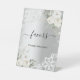 Un fond d'aspect argenté faux. Décoré de roses blanches, de fleurs, de dentelle blanche et de quelques diamants. Avec le texte : faveurs. Veuillez en prendre un !