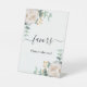 Fond blanc. Décoré de pivoine blanche, fleurs, feuilles d'eucalyptus aquarellées vertes, brindilles, feuillage, feuilles d'or faux. Avec le texte : Faveurs, prenez-en un !