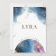 Profitez d'un thème de constellation céleste avec nos panneaux de constellation. Panneau de table Lyra avec des taches d'aquarelle exquises et globe céleste avec constellations sur le devant et le dos avec arrière - plan céleste d'aquarelle complète avec étoiles de constellation Lyra au centre. Design avec des teintes bleu, bleu marine, turquoise, violet, magenta, fuchsia et doré. 15 cartes de numéro de table de constellation disponibles. Possibilité de modifier le nom de la table si nécessaire. Signal de carte de sièges de coordination disponible.