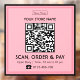 Code QR scannable pour le menu de restaurant ou les produits de vente au détail permettant aux clients de scanner, commander et payer directement depuis leurs appareils mobiles. Plus de longues files d'attente. Convient à tout type d'entreprise, cela aide à rationaliser les services ; qu'il s'agisse d'un service non lié à la nourriture ou d'un food truck ou d'un restaurant à service complet. Garder vos clients et votre personnel heureux est l'objectif ultime.