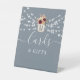 Guidez vos invités avec ce charmant panneau de mariage bleu poussiéreux pour cartes et cadeaux. Caractérisé par des guirlandes lumineuses douces, des florales romantiques bourgueil et pêche dans un monogramme de pot Mason, c'est la touche parfaite pour votre table de cadeaux ou zone de bienvenue.