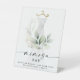 Ce design élégant présente un bouquet aquarelle doux d'eucalyptus, de verdure et d'ornements dorés s'enroulant autour d'une robe peinte. Affiche à votre bar à mimosa pour la douche de la mariée. Voir la collection entière pour plus d'articles assortis !