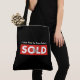 Sac de courses en toile Agent immobilier Vendu Panneau noir rouge personnalisable avec nom par Tell3People.