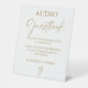 Ce panneau audio est en or et a un style minimaliste moderne avec un script manuscrit boho. Son jeu classique de couleurs noir et blanc en fait un accent idéal pour tous les rassemblements. Utilisez ce poster pour votre réception de mariage, douche nuptiale, fête de la retraite et autres occasions spéciales. Modifiez *la plupart* du texte selon vos besoins.