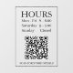 Panneau Heures d'Ouverture : Générez un code QR pour la porte ou la fenêtre d'entrée de votre magasin en texte noir sur fond transparent avec un message de code QR.