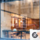 Signe d'étiquette de la boutique de café avec logo- clous de fenêtre
