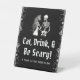 Créez l'ambiance pour une célébration effrayante et amusante avec le Panneau Squelette de Halloween noir Manger, Boire & Être Effrayant. Avec un design gothique sombre et des motifs de squelette inquiétants, ce panneau ajoute une touche effrayante à votre événement tout en encourageant les invités à se régaler de délicieux plats et boissons. Parfait pour les fêtes d'Halloween ou les rassemblements thématiques, il combine une touche d'élégance sombre avec un charme ludique et glaçant.💀