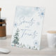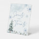 Panneau Sweets and treats. Baby shower bleu sur le thème de l'hiver, et panneau pour la fête de fiançailles avec des pins et des flocons de neige.