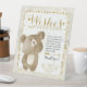 Le thème combo "Oh Baby the World Await" dans une typographie dorée cartographiée. Un nounours adorable qui contemple les souhaits et les prédictions. Panneau de tablette pour la prédiction et la direction des cartes de voeux.