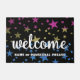 Colourful pansexual gay pride flag colours with faux glitter star shapes, pop against an elegant black background. Pink, yellow and blue colours welcome guests to your home, business or classroom. Bold white text reads "welcome". Easily update the teacher or family name or classroom title. Maybe there's enough room for a cute pansexual joke or phrase? It's yours to customize. Available in many other sparkly background colours and designs.
