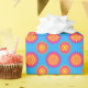 Wrapping paper with a seamless modern geometric flower pattern in the colours of the pansexuality pride flag; a pink, yellow, and blue bi pride design