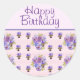 Pansy Flower Pink Stripe floral Happy Birthday Classic Round Sticker