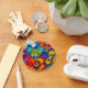 Colourful painting motif of pansies by Lisa Lorenz on a stylish Key Chain