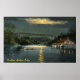 1910 vintage postcard showing a couple boating across Panther Hollow Lake in Schenley Park by moonlight. Reprinted on this poster.