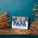 Modern family photo plaque featuring 3 square pictures for you to replace with your own, the title "PAPA", a personalized saying that reads "the man, the myth, the legend", and the grandkids names.