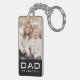 Porte - clé avec le texte "Papa" dans une police moderne avec le texte personnalisable "nous t'aimons" ci-dessous. Ci-dessus est un modèle photo personnalisable. Les couleurs par défaut sont le noir et le blanc, mais toutes les couleurs peuvent être customisées dans l'outil de conception.