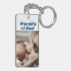 Porte - clé avec le numéro 1 du monde en 3D texte bleu marine. Customisez-le avec votre propre photo. Disponible pour plusieurs styles.