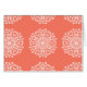 This white mandala sits on a papaya orange or salmon background. The colours are light and warm. Part of the Mola Mandala Collection.