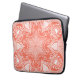 This white mandala sits on a papaya orange or salmon background. The colours are light and warm. Part of the Howlsplann Mandala Collection.