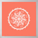 This white mandala sits on a papaya orange or salmon background. The colours are light and warm. Part of the Bleujenn Mandala Collection.