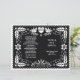 Pique picado noir et blanc inséparables programme plié de la fiesta mariage. Il présente deux lovebirds blancs et un coeur d'amour avec le mot amour et fleurs, feuille et petits points sur arrière - plan noir. Ce style d'art folklorique mexicain à mariage fleuri design modèle est entièrement personnalisable.