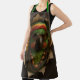 Dit papegaai keukenschort is een echte blikvanger. De groene vogel met muts, bril en houten ketting straalt een tropische mix van rust en attitude uit. De warme kleuren en zonnige achtergrond geven direct een vrolijk gevoel in de keuken.