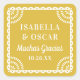 Cet autocollant coloré de faveur de mariage présente un cadre d'inspiration picado papel en blanc sur un arrière - plan jaune chaleureux. La typographie est simple mais élégante. Toutes les couleurs de cette conception sont personnalisables à l'aide de l'outil d'édition. Consultez la collection pour la coordination des articles !