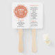 Papel Picado love birds coral wedding program hand fan featuring two love birds and a love heart with the word love, flowers and small dots in white on coral peach tones scalloped background. This design is totally customizable.