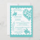 "Papel Picado Mexican Fiesta Wedding Details Card for the Wedding Invitation Suite." Hand drawn design elements include laurel leaf wreath elements, cute whimsical dove birds, a heart with flowers and leaves and a scalloped edge. On the reverse side are the hand lettered words "viva el amor" or "love alive." Original art and graphic design created by internationally licensed artist, Audrey Jeanne Roberts, copyright.