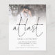 PAPER At Last Script Photo QR Code Save The Date. A great value PAPER (not card) alternative WITHOUT ENVELOPES at SMALLER size 4.5” x 5.6” and at a budget price. (Standard A6 envelopes are the nearest size to fit). Add your QR code to your wedding website on the back by replacing the sample URL code in the template with your own website URL and your QR code will be automatically generated. A stylish minimalist photo design with an elegant informal style set script for At Last and easily personalise the rest of the text. Replace the photo with your own favourite.