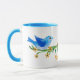 Customize this cheerful bird motif mug with your own name or text. Features a pair of cut and layered paper look bluebirds on flowered branches, created with graphics by MariR at www.cu4you.com.