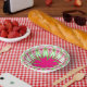 paper bowl bright pink and green plate